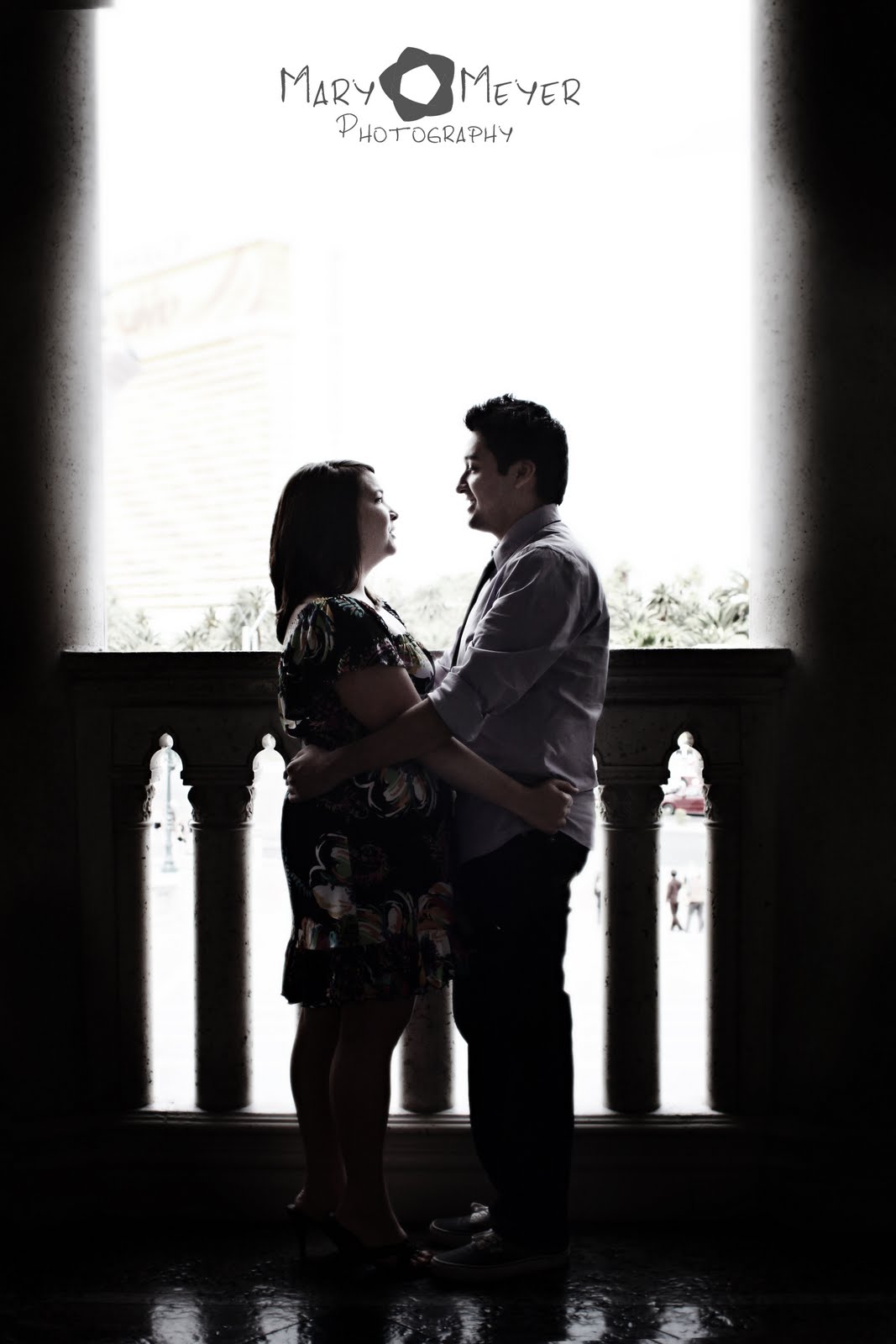 The other day I had an Engagement shoot with an adorable couple from Texas, Amanda and Michael. They wanted to have their photos on the strip because it was in Las Vegas where Michael proposed to Amanda! He popped the question at the Venetian so we definitely had to get some shots there to start out. While we were there, I was asking for engagement details and Michael had this big elaborate romantic plan to ask Amanda on the balcony above the front entrance to the casino looking out on to the strip. That was how it was, ugh... supposed to happen... Amanda got sick that night and he ended up asking her in the room. But hey, they can still say that they got engaged in Vegas, right??Here is the balcony at the Venetian on which the proposal was going to happen, it made for some beautiful photos and was very romantic! Nice work Michael!